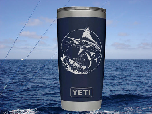Marlin Fishing Custom Engraved Tumbler or Bottle