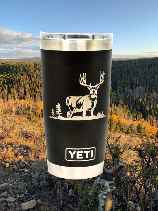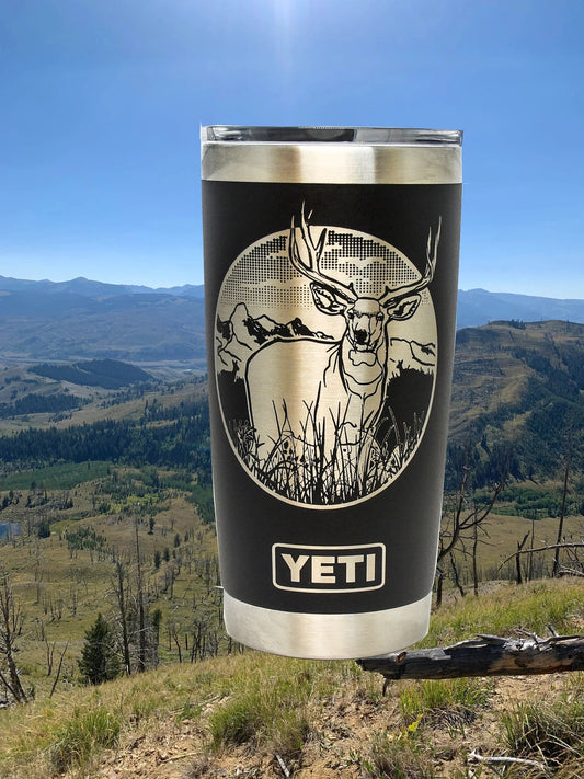 Mule Deer Scene Custom Engraved Tumbler or Bottle