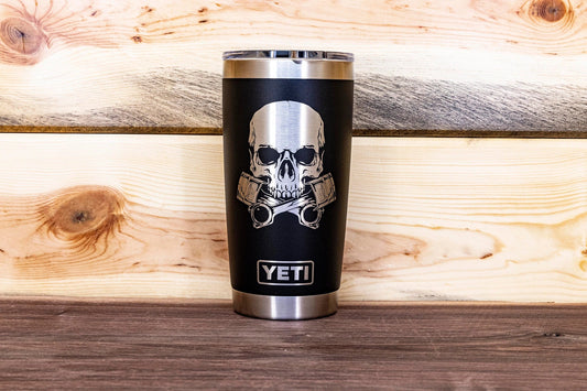 Skull and Cross Pistons Custom Engraved Tumbler or Bottle